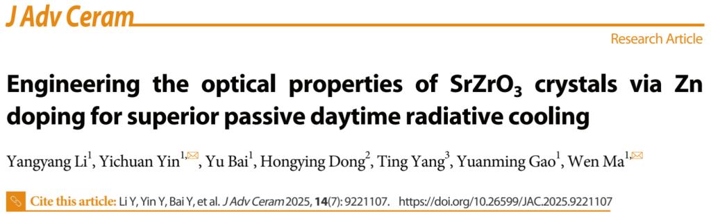 我校材料科學(xué)與工程學(xué)院馬文教授課題組在Zn摻雜SrZrO3晶體光學(xué)性能調(diào)控及其高效被動(dòng)輻射冷卻研究中取得重要進(jìn)展